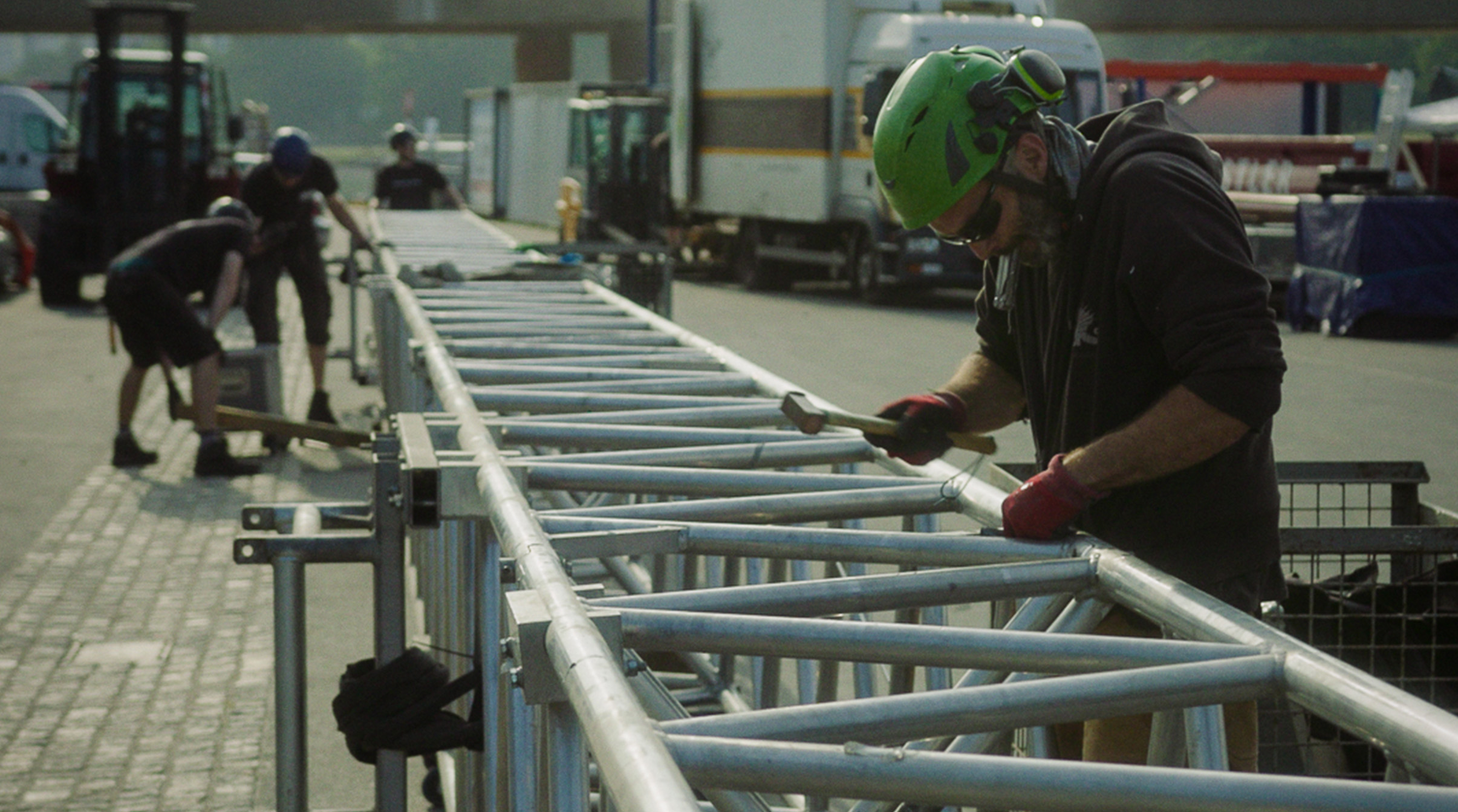 Nachdem das Team am ersten Tag die Pylonen für die Bühne aufgestellt hatte, mussten mehrere 30 Meter lange und vier Tonnen schwere Traversen gehoben und schwebend montiert werden – und das mit bis zu 32 Metern Ausladung. Der Hub war filmreif! Bis Ende August werden jetzt 100 Filme gezeigt und einige große Konzerte gespielt – von #Sido über #Scooter und die #FantastischenVier bis zu #RolandKaiser.